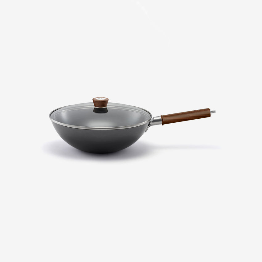 • Matériel : fer pur à 99 %, technologie de filage, fond épais et corps fin, poignée et bouton de couvercle en ébène, couvercle en verre trempé