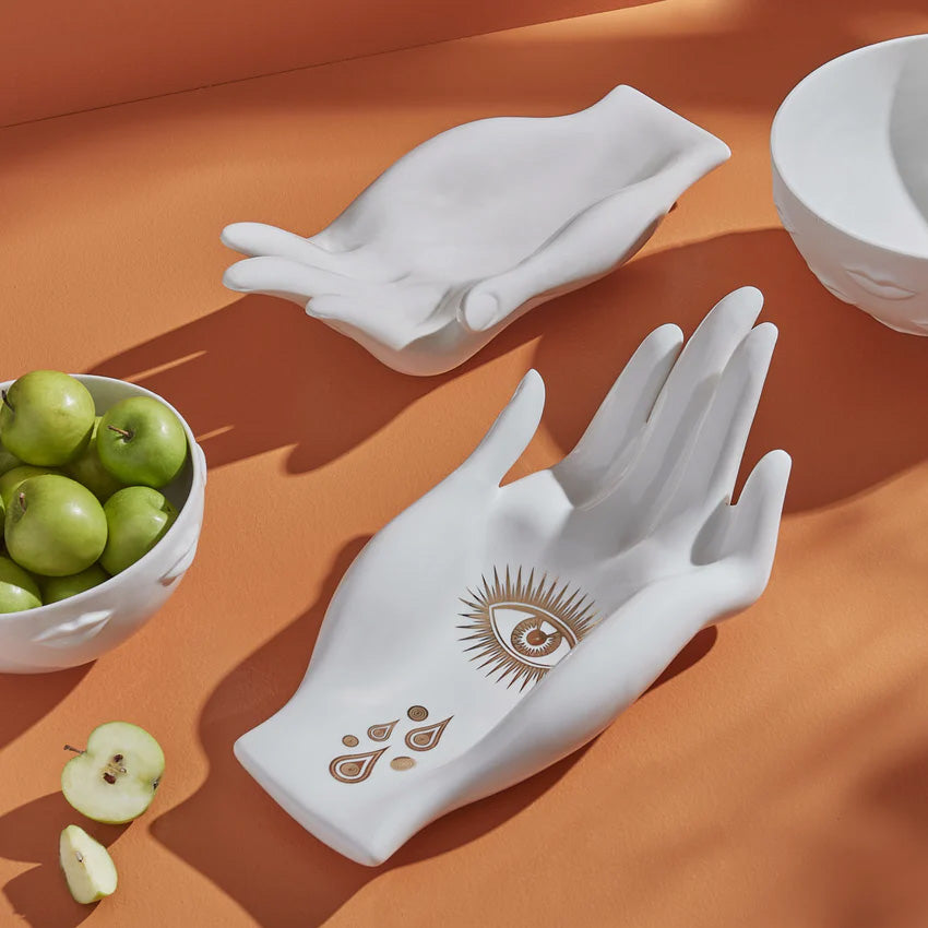 Des symboles dorés scintillants et des signes subversifs ornent cette pièce brillante en porcelaine cuite à haute température. Inspirée d'Ève, une véritable pièce originale, elle apporte une touche distinctive et élégante à votre décoration.