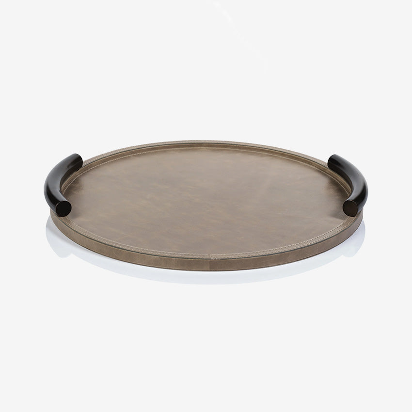 Zodax | Plateau de service rond Bellecote - Cuir de vison