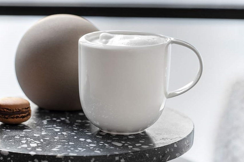 Inspirée des phases enchanteresses de la lune, cette collection présente des motifs asymétriques et de la vaisselle en porcelaine avec des finitions blanc brillant et beige mat.