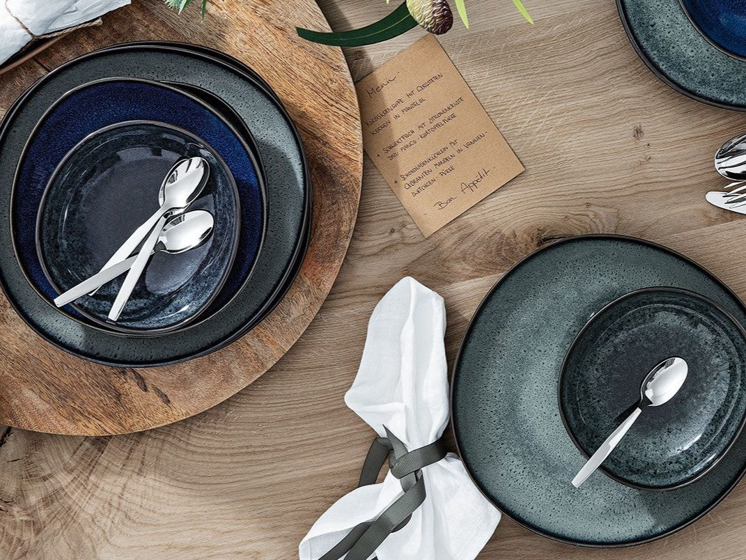 Fabriquée avec la porcelaine et des matériaux naturels comme le bois et l'ardoise, cette collection apporte de la sophistication à toute table grâce à son allure rustique et raffinée.