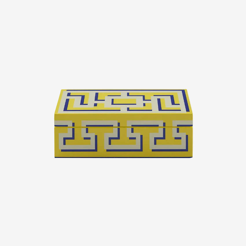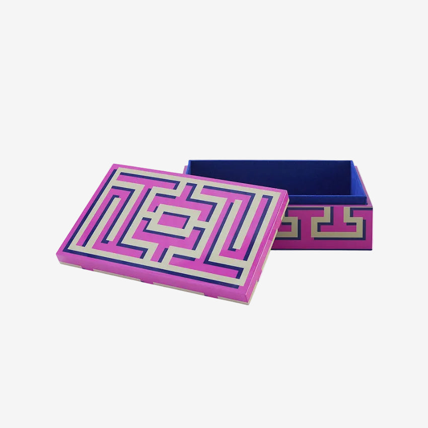 Affirmez votre style avec ces boîtes laquées finies à la main qui insufflent du caractère à n'importe quelle pièce. Le motif labyrinthe iconique se réinvente avec une touche contemporaine grâce à trois couleurs éclatantes. Parfaites pour un rangement élégant, à superposer pour un effet visuel saisissant, ou utilisées seules comme élément décoratif, ces boîtes s'adaptent à vos envies.