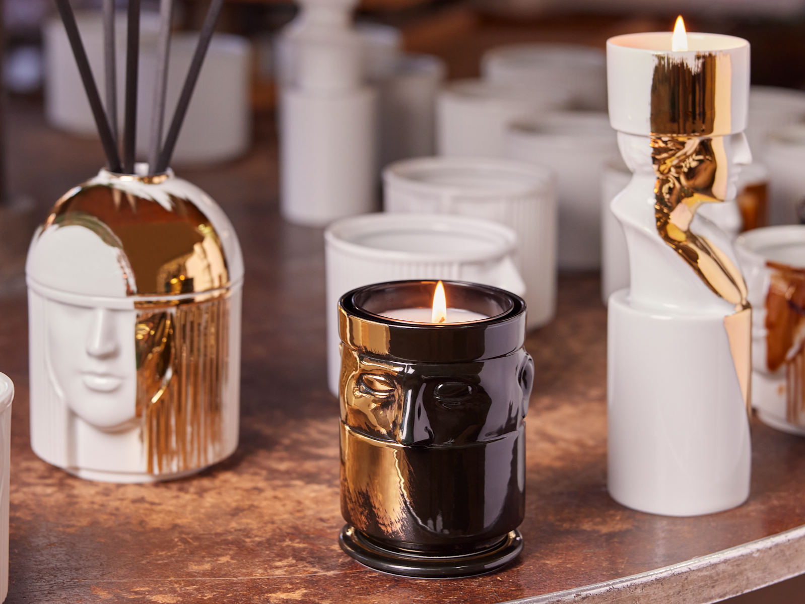 The La Compagnia di Caterina collection, designed by Luca Nichetto, honours Catherine de' Medici's journey to Paris. Featuring figures from her entourage; L'Amazzone, L'Amante, Il Letterato, Il Seguace, Il Favorito, Il Frate and La Dame, each are considered a symbol of valor to aspire to.